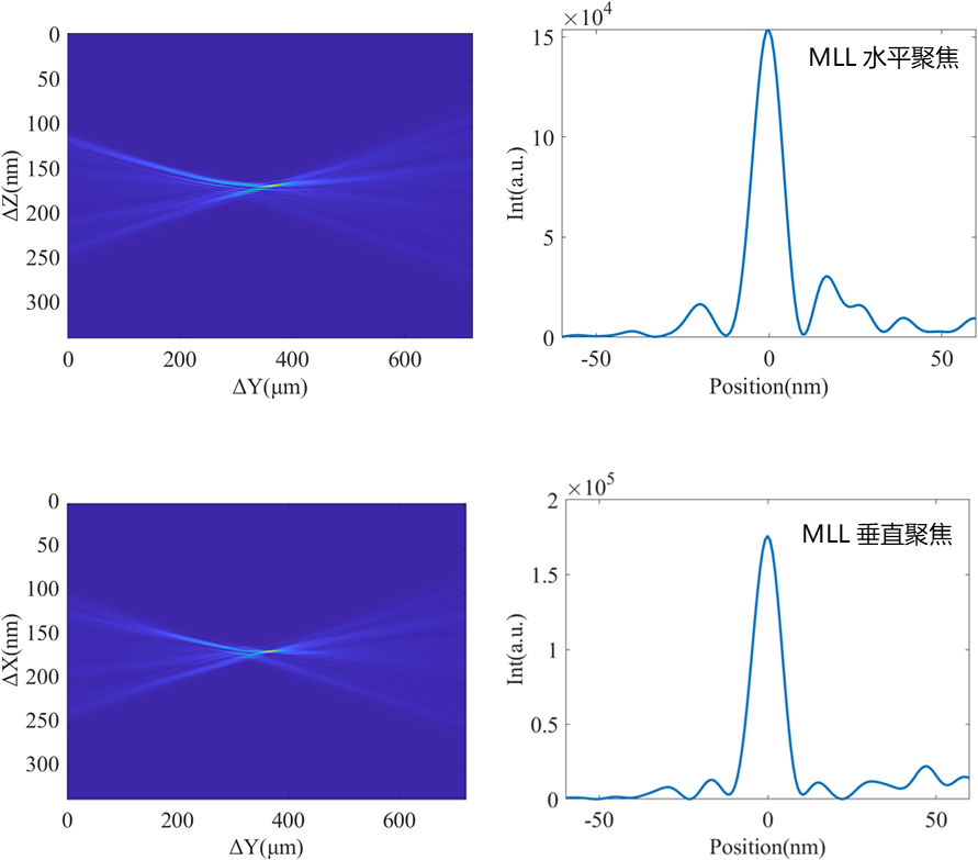 X射线纳米探针线站:HEPS研制多层膜劳埃透镜的水平、垂直聚焦散焦图(第三次现场测试数据),水平聚焦半高宽10.5nm,垂直聚焦半高宽12.6nm