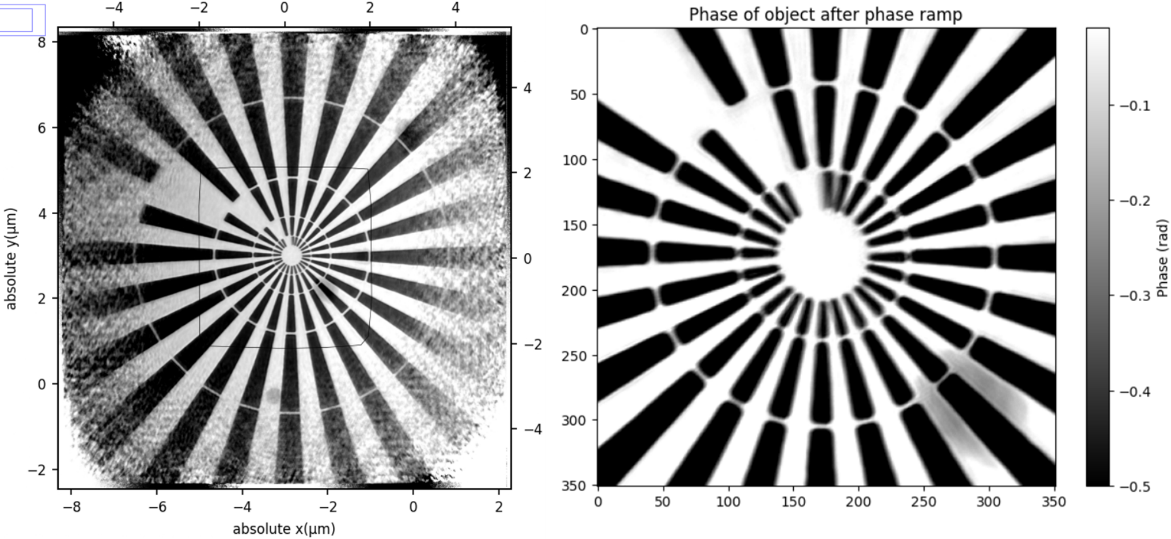 X射线相干散射线站:ptychography重建图像最内层条纹宽度30nm,重建像素尺寸6.9nm,分辨率约9.5nm